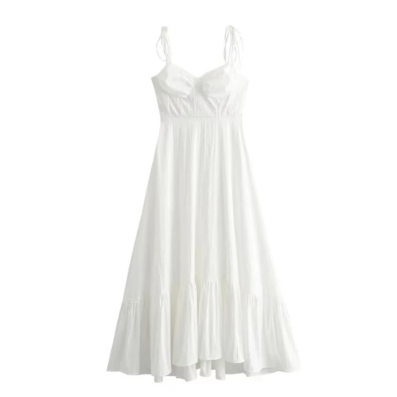 £55.00 GBP£55.00 GBP £72.00 GBP/Radiate effortless romance with this ethereal mid-calf dress from Faslune. Featuring a classic sweetheart neckline and delicate tie-up spaghetti straps, it flows into a graceful A-line...