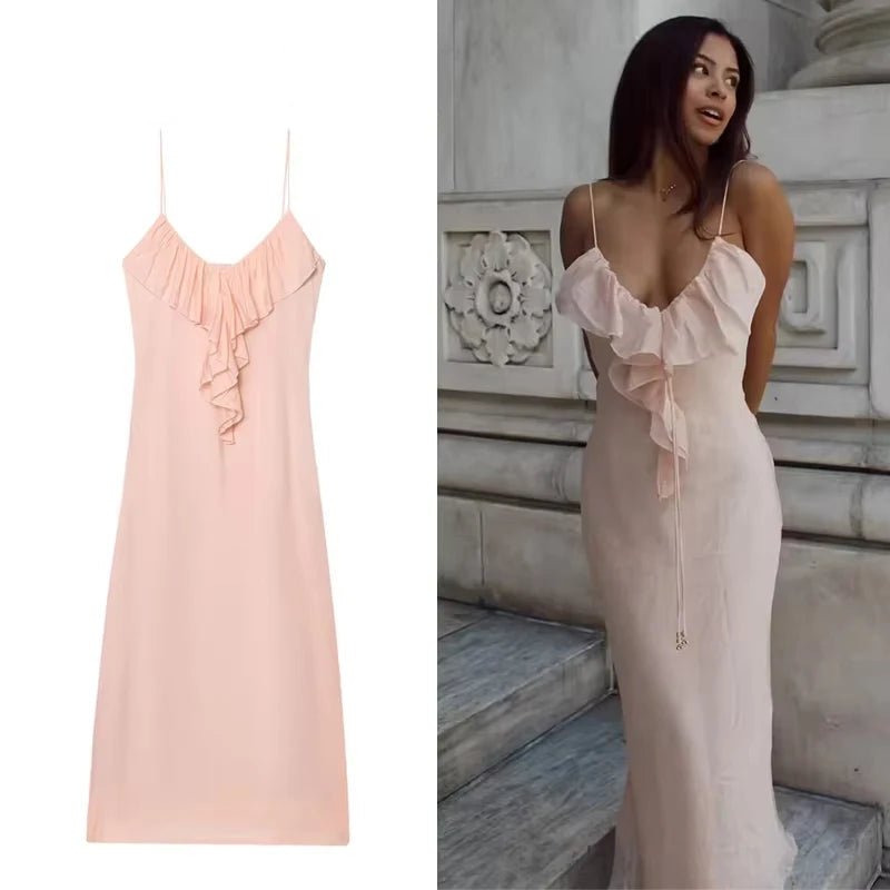 £49.00 GBP£49.00 GBP £65.00 GBP/Infuse your summer wardrobe with effortless romance in this stunning mid-calf dress from Faslune. It features a sophisticated V-neckline accented by a cascading ruffle detail that...