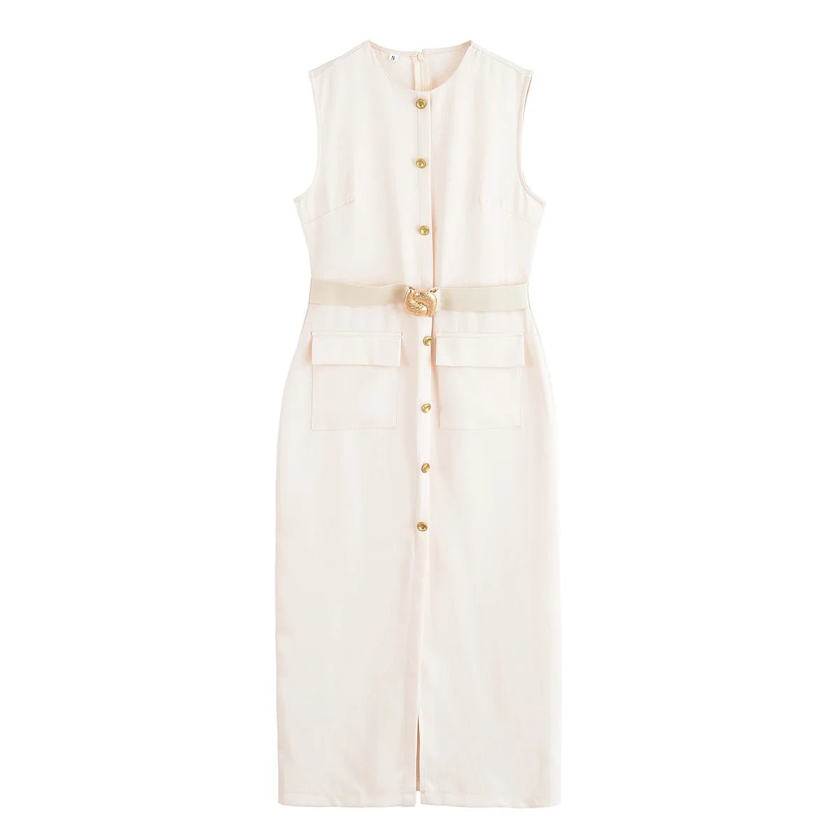 £52.00 GBP£52.00 GBP £72.00 GBP/Elevate your daily ensemble with this sophisticated ankle-length dress from Faslune. Designed with a timeless O-neckline and a tank-style bodice, it features a beautifully draped pleated...