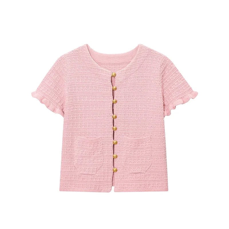 £52.00 GBP£52.00 GBP £68.00 GBP/Elevate your seasonal wardrobe with this exquisitely textured short-sleeve cardigan from Faslune. Featuring a sophisticated O-neckline and ornate gold-tone buttons, this piece masterfully blends vintage charm...