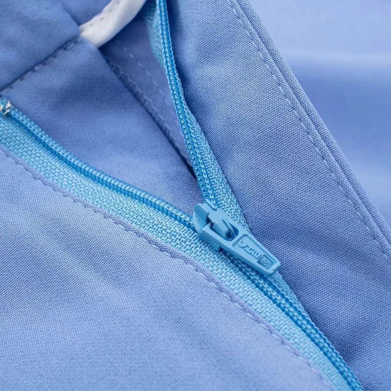 - Design: High-waist construction with a pleated front style, secure zipper fly, and functional side pockets.